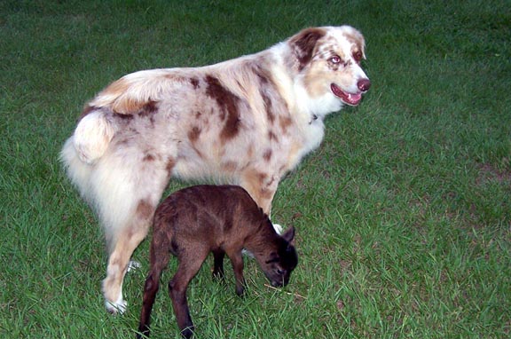 Apart from gathering gourds and digging up, running over and laying on plants, I have other duties, too, like Baby Sitting the bottle baby Lambs - and that is quite a job! Those little fellers can be a real handful! But, as long as they share their milk, I don't mind!